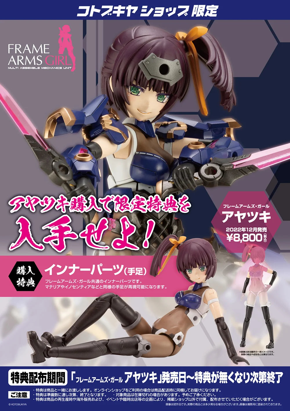 Frame Arms Girl Magatsuki is based on the Frame Arms model of the same name designed by ToMo and transformed into an original female character illustrated by E-ji Komatsu.