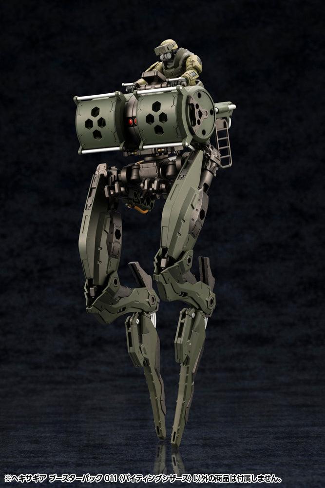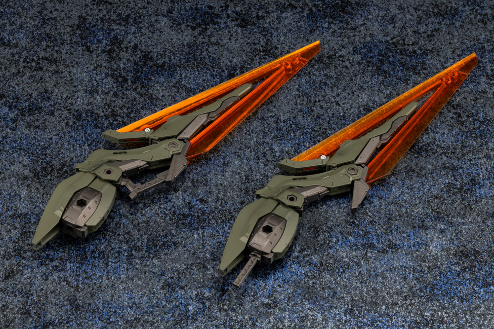 HEXA GEAR BOOSTER PACK 011 is an armament set that features a versatile design that lets it change forms from beetle pincers, mandibles, legs, wings, to even swords. The unit is made in HEXA GEAR dark green and can be combined with booster packs 007, 008, 012, and 013 to assemble a dark green version of the large close-quarters combat unit, HEXA GEAR GERTRUDE.