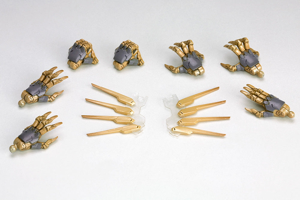 The kit includes four types of manipulators (interchangeable hand parts): standard, closed, gripping, and nail vulcan open palm.