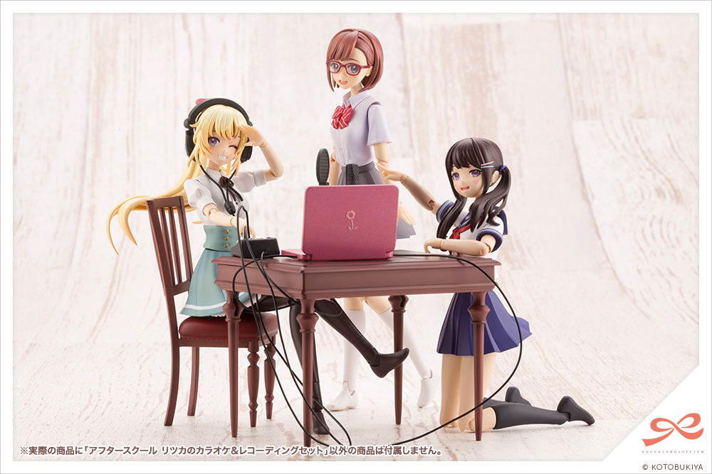 The laptop and audio mixer make a streamer setting, allowing users to display the girls on their show on the Sousai Shojo Channel, offering a different style of fun from the previous after school series.